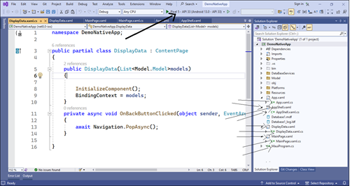 DisplayData.xaml is new content page like mainpage.xaml and mainpage.xaml.cs.